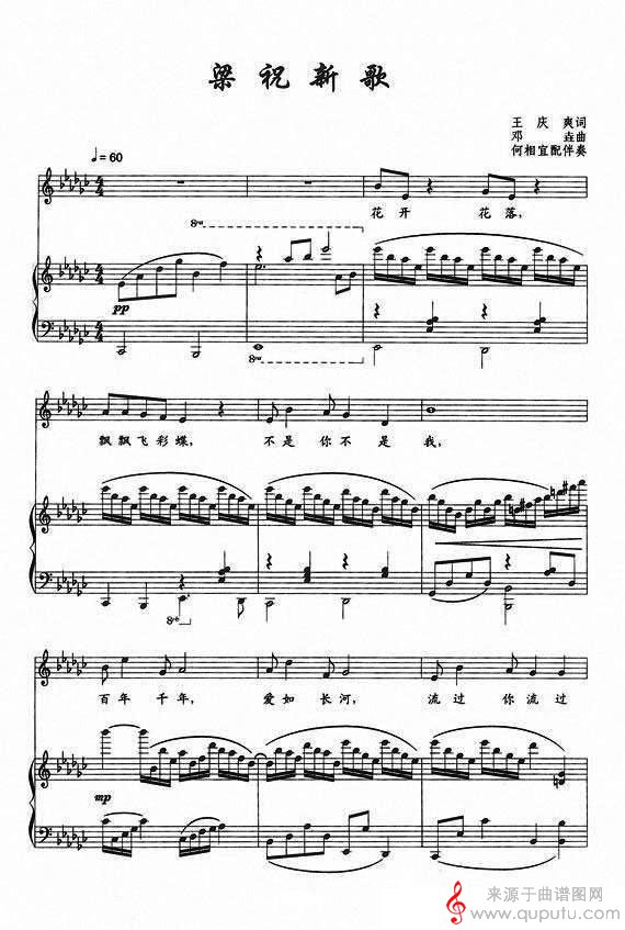 曲谱图网为您提供梁祝新歌(五线谱正谱)找谱子,就上曲谱图网。