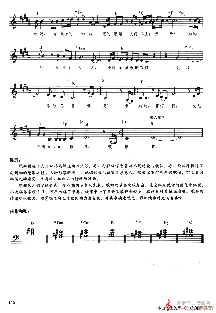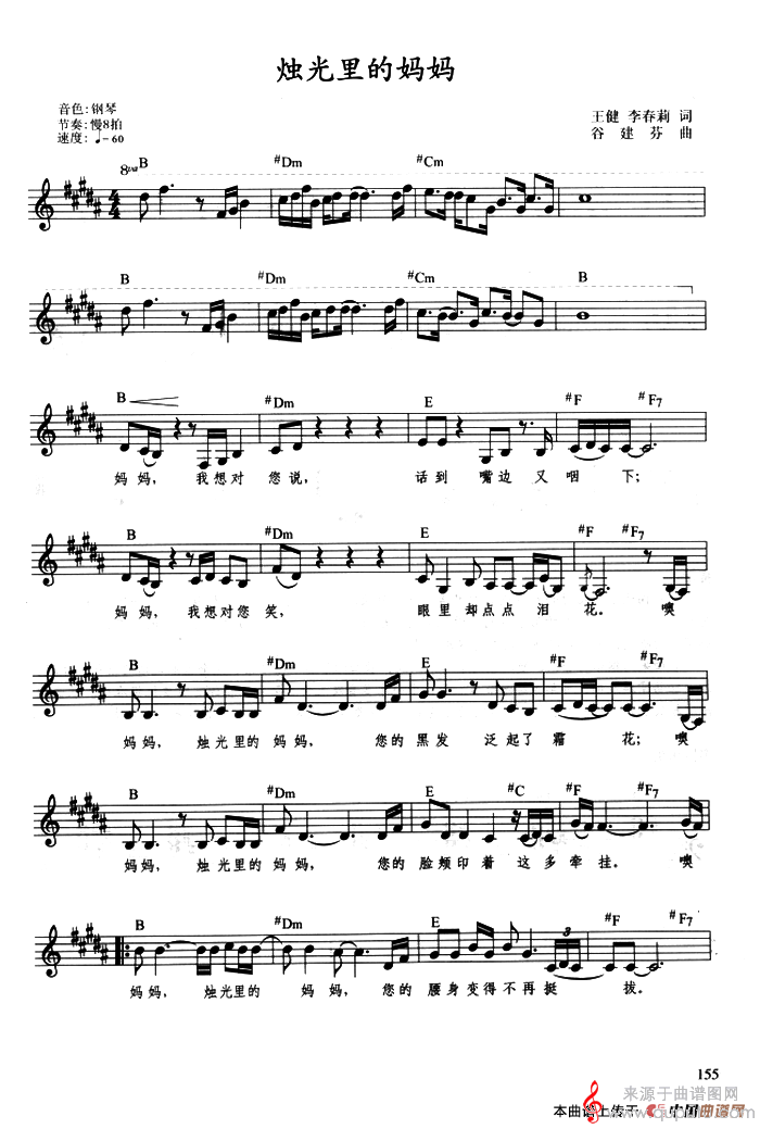 曲谱图网为您提供烛光里的妈妈(带歌词、提示版)找谱子,就上曲谱图网。