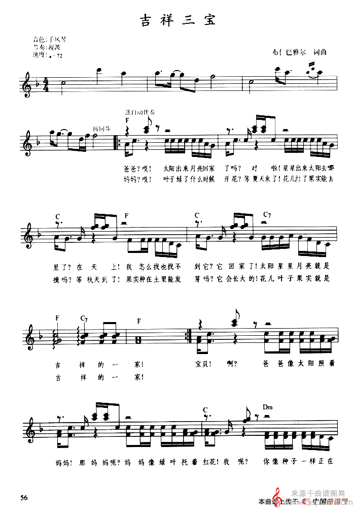 曲谱图网为您提供吉祥三宝(带歌词提示版)找谱子,就上曲谱图网。