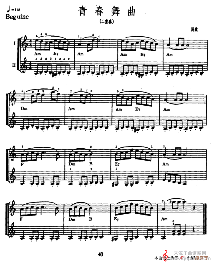曲谱图网为您提供青春舞曲(二重奏)找谱子,就上曲谱图网。