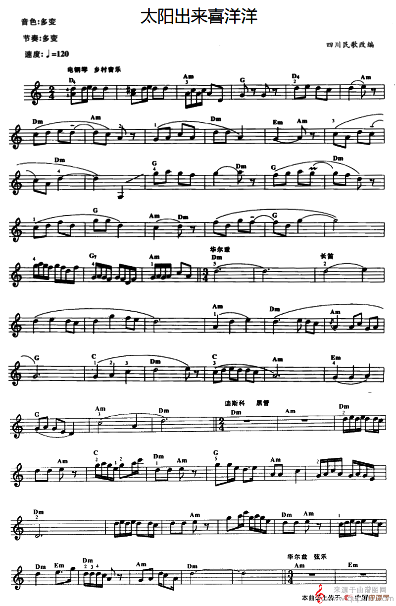 曲谱图网为您提供太阳出来喜洋洋找谱子,就上曲谱图网。