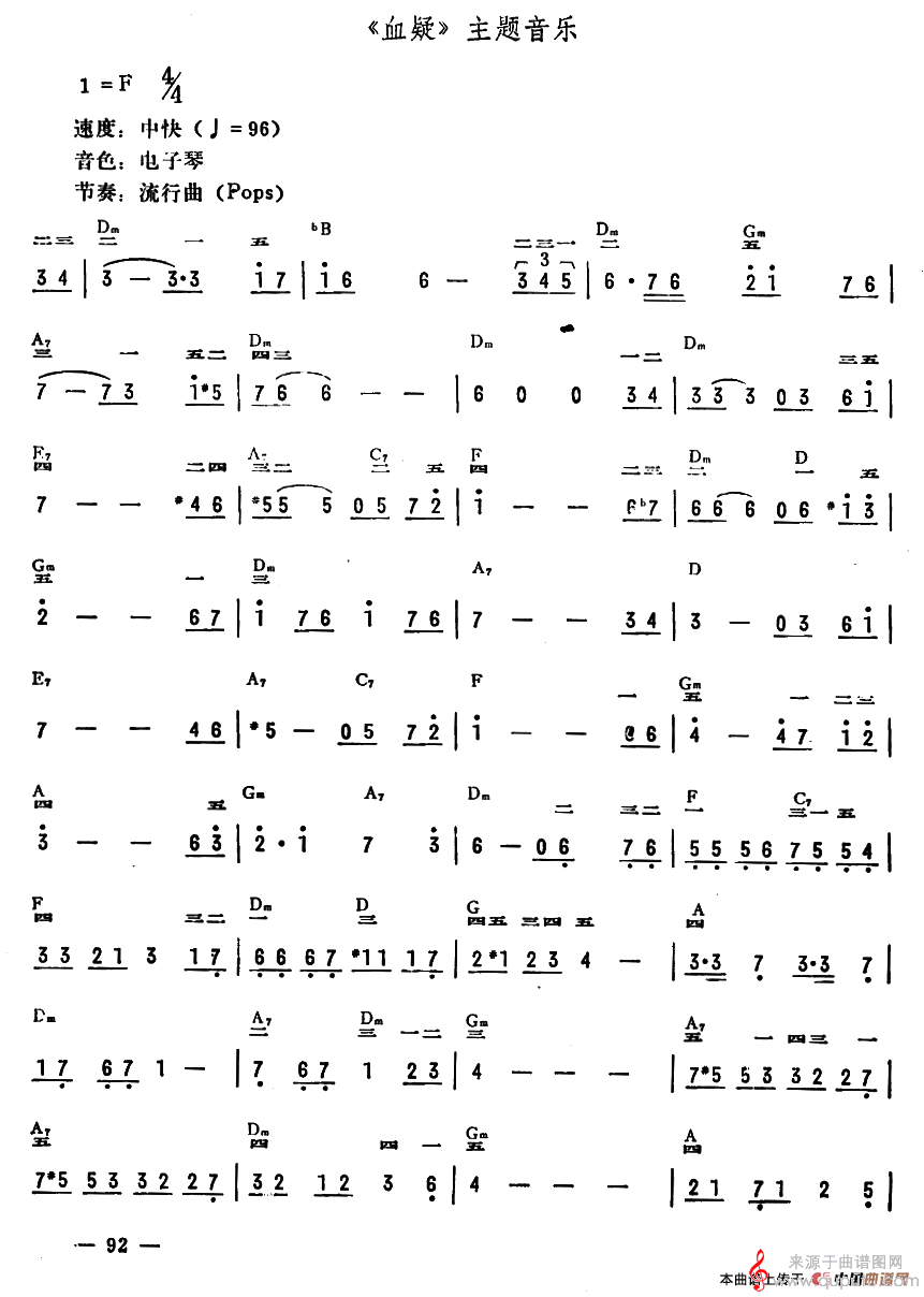 曲谱图网为您提供《血疑》主题音乐找谱子,就上曲谱图网。