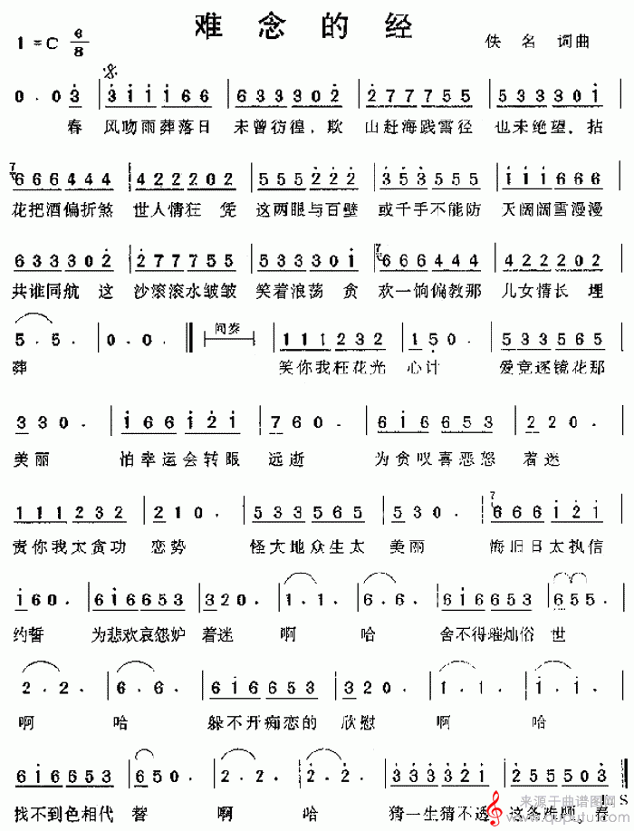 曲谱图网为您提供难念的经(萧演奏曲谱)找谱子,就上曲谱图网。