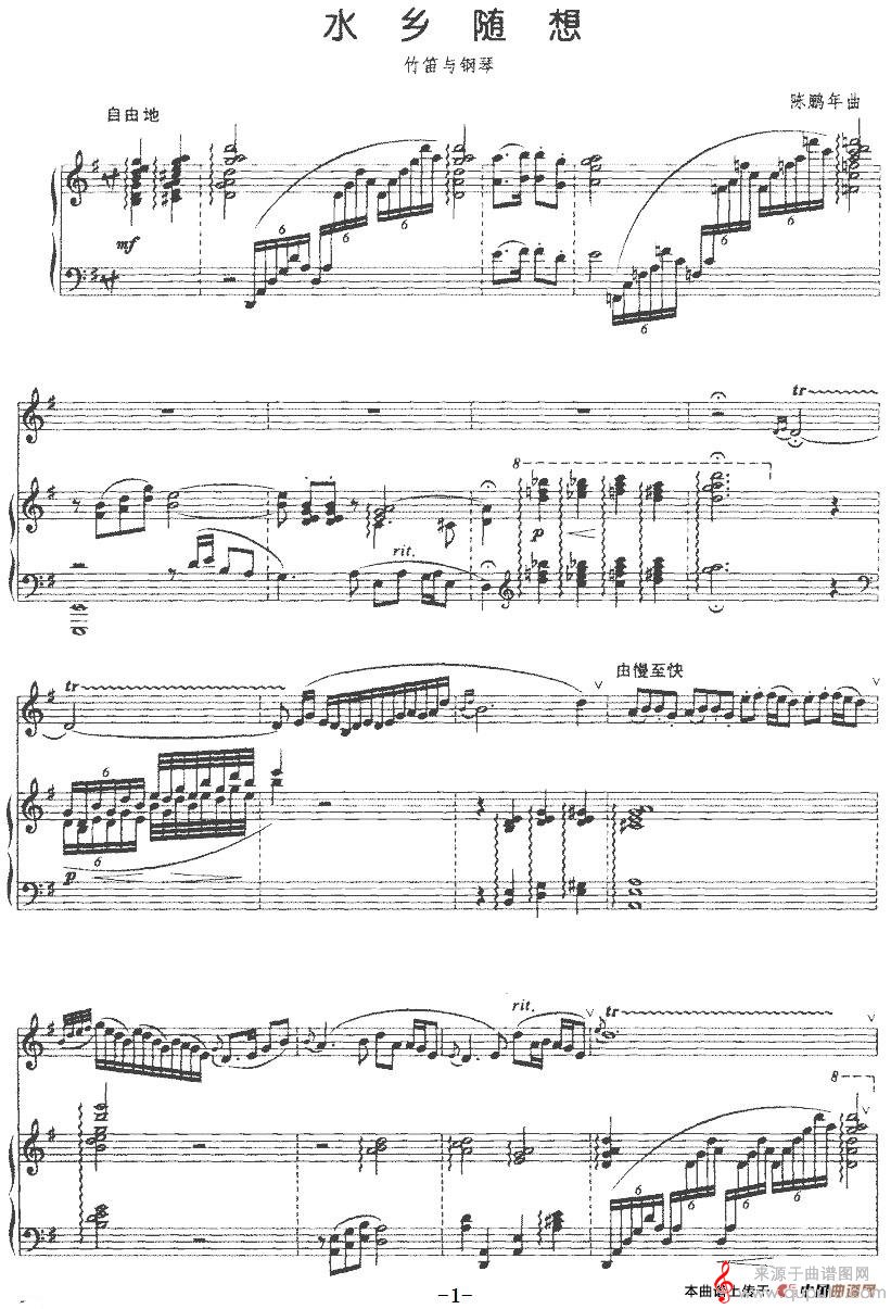 曲谱图网为您提供水乡随想(水乡随想竹笛+钢琴伴奏)找谱子,就上曲谱图网。