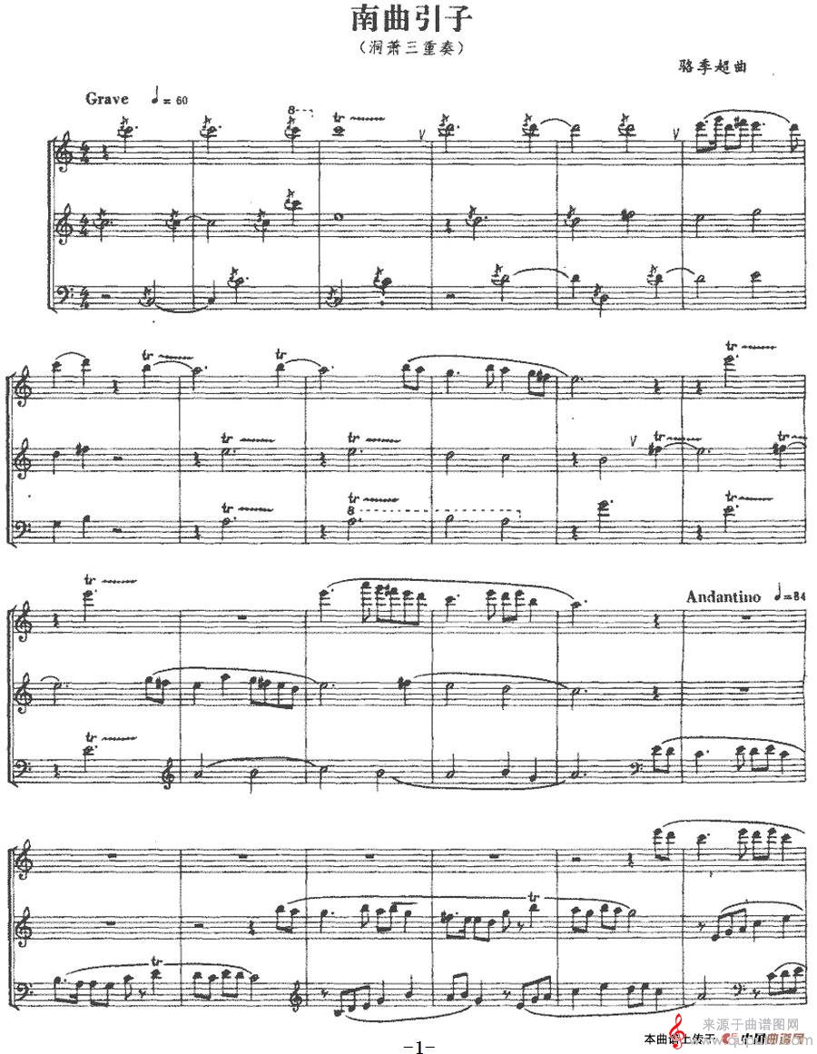 曲谱图网为您提供南曲引子(南曲引子洞箫三重奏、五线谱)找谱子,就上曲谱图网。