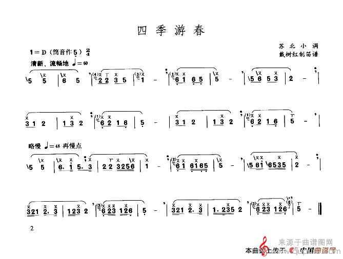 曲谱图网为您提供四季游春(苏北小调、倒数宏制笛谱)找谱子,就上曲谱图网。