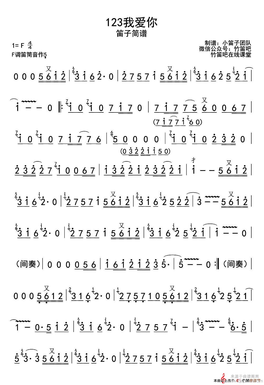 曲谱图网为您提供123我爱你(123我爱你笛箫)找谱子,就上曲谱图网。