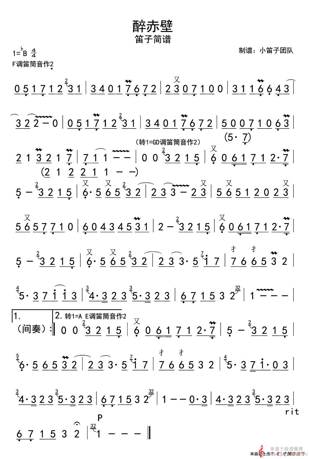 曲谱图网为您提供醉赤壁(醉赤壁歌词)找谱子,就上曲谱图网。