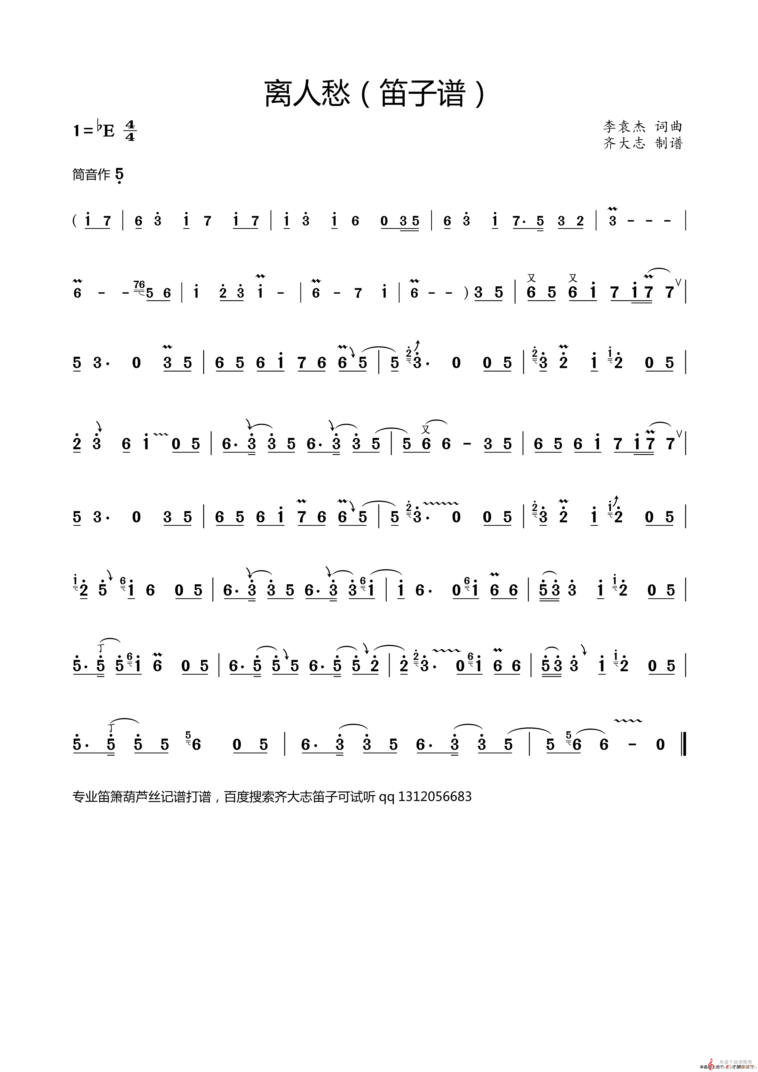 曲谱图网为您提供离人愁(离人愁歌曲歌词演奏)找谱子,就上曲谱图网。