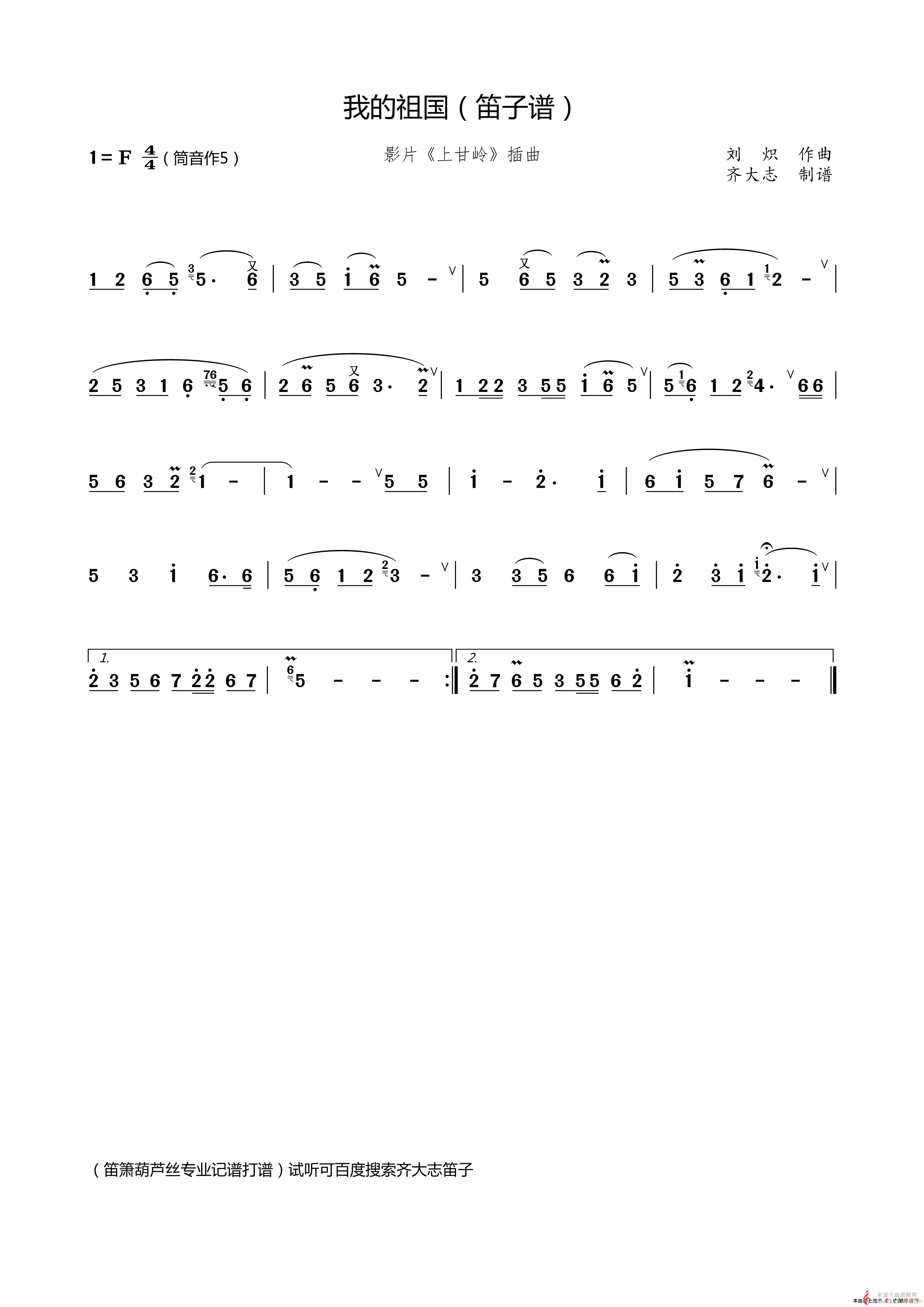曲谱图网为您提供我的祖国(我的祖国歌词笛子谱)找谱子,就上曲谱图网。