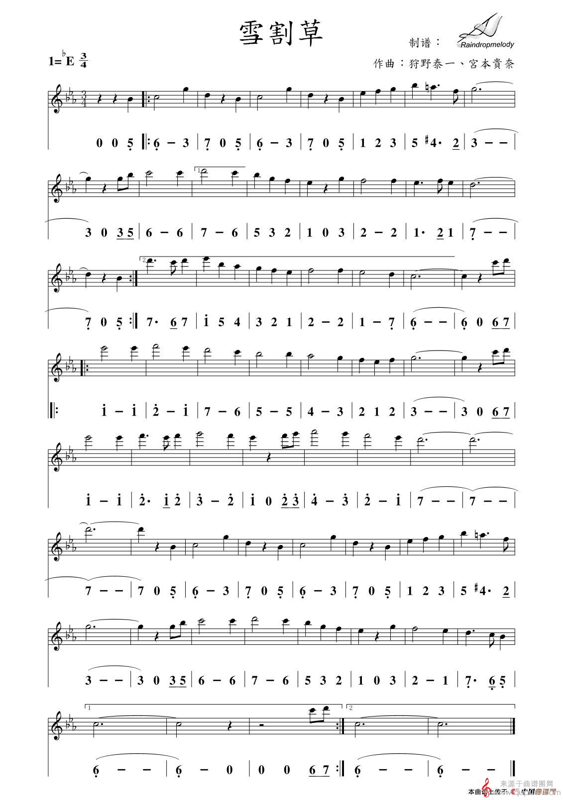 曲谱图网为您提供雪割草(雪割草线简谱对照版)找谱子,就上曲谱图网。