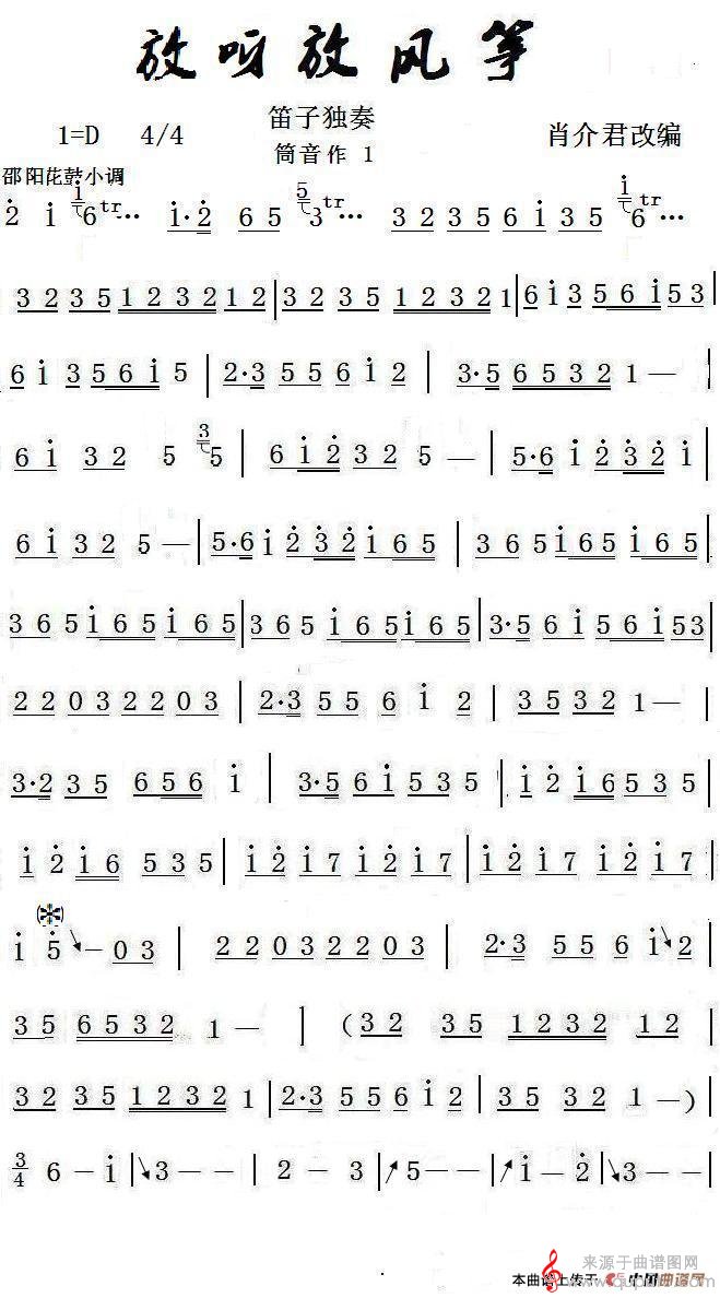 曲谱图网为您提供放呀放风筝(放呀放风筝笛子独奏)找谱子,就上曲谱图网。