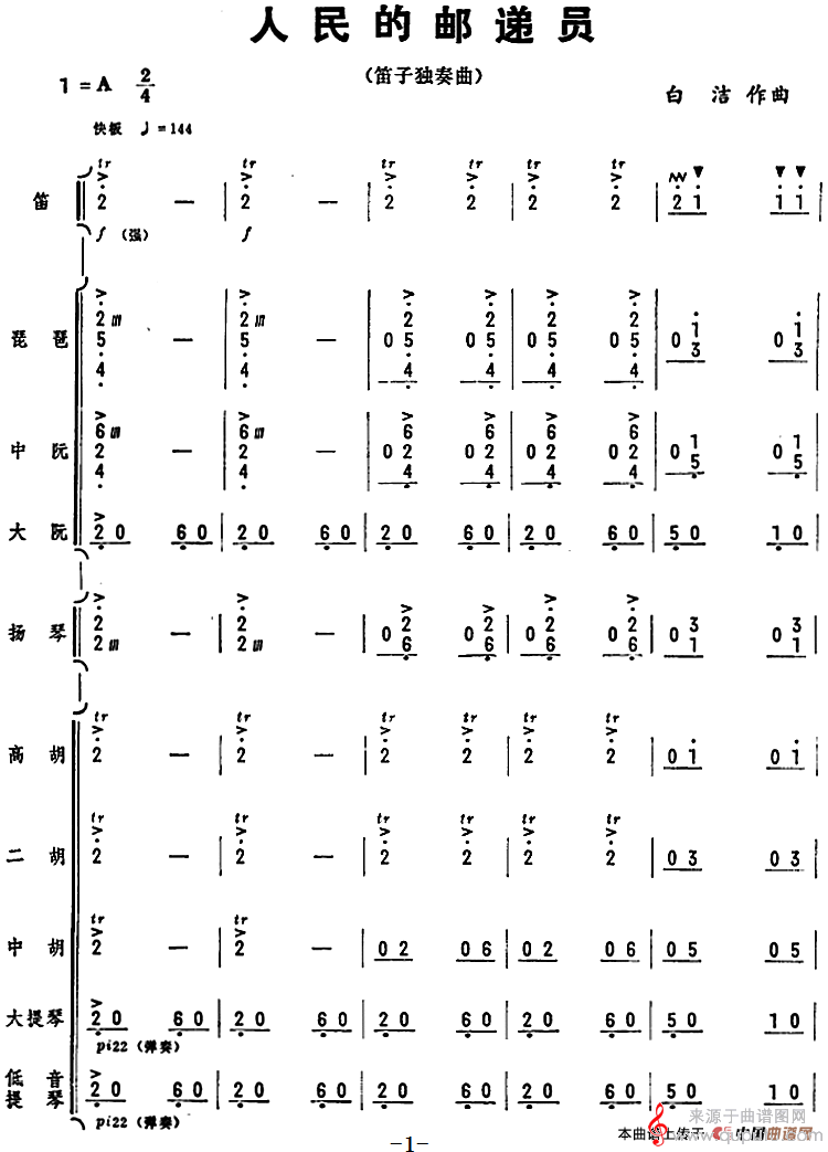 曲谱图网为您提供人民的邮递员(人民的邮递员笛子独奏+乐队伴奏曲总谱)找谱子,就上曲谱图网。
