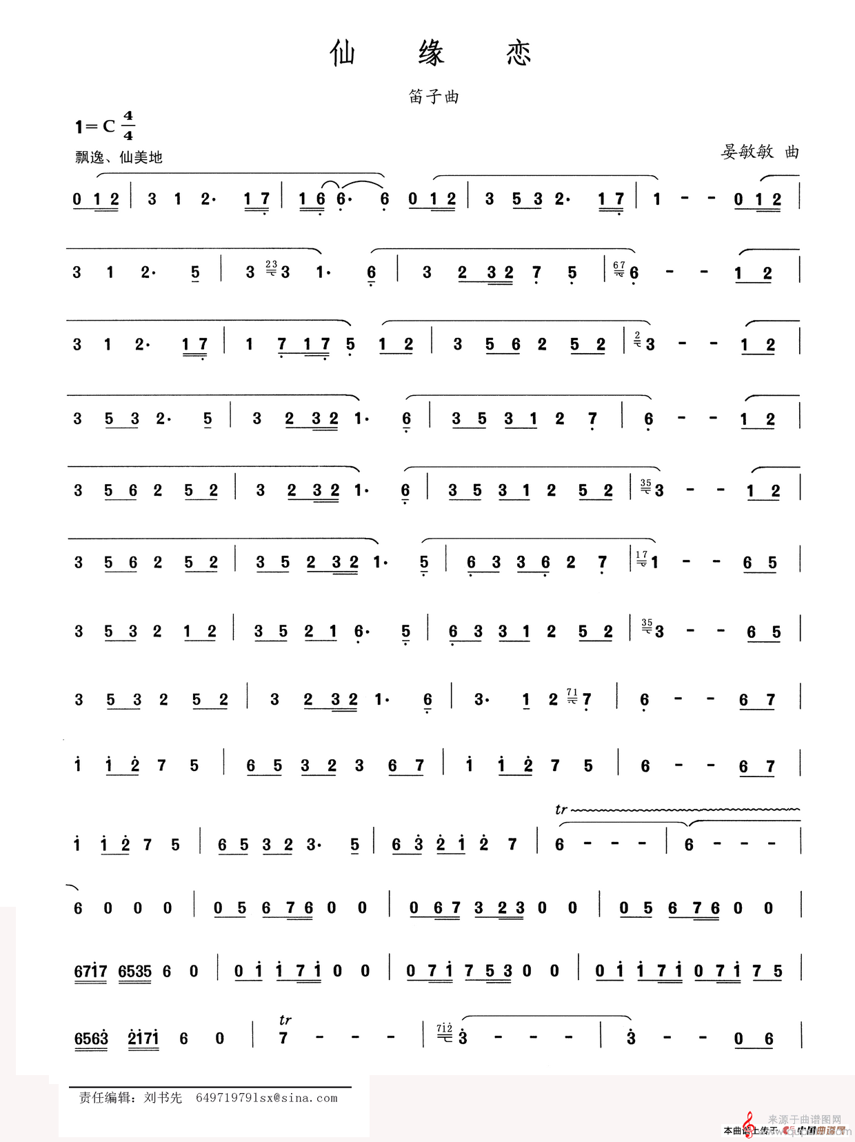 曲谱图网为您提供仙缘恋简谱(仙缘恋笛子曲谱)找谱子,就上曲谱图网。