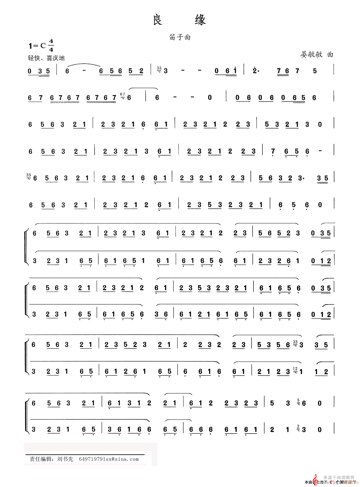 曲谱图网为您提供良缘(晏敏敏曲)找谱子,就上曲谱图网。