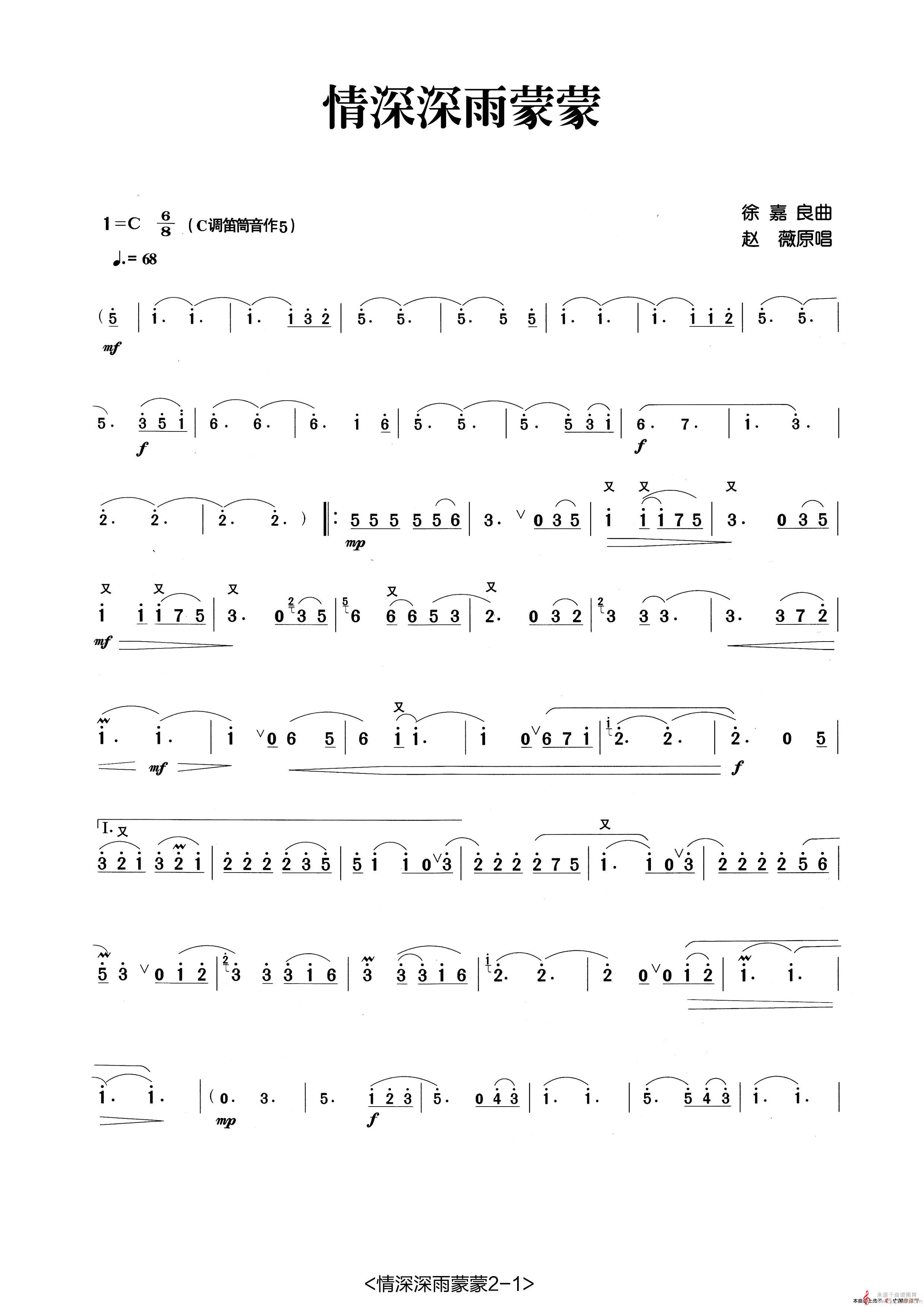 曲谱图网为您提供情深深雨蒙蒙(情深深雨蒙蒙歌曲歌词)找谱子,就上曲谱图网。