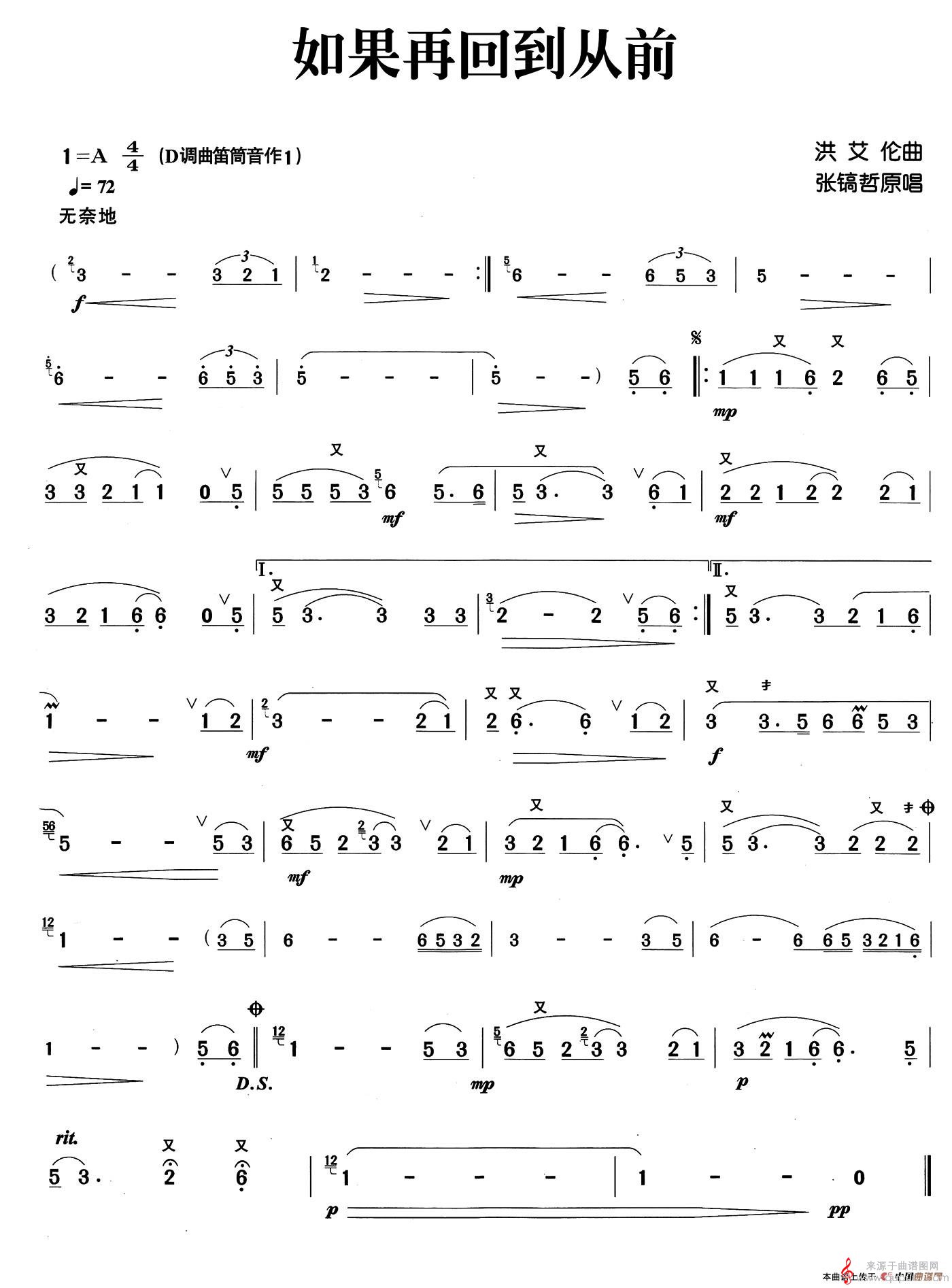 曲谱图网为您提供如果再回到从前(如果再回到从前笛子制谱版)找谱子,就上曲谱图网。
