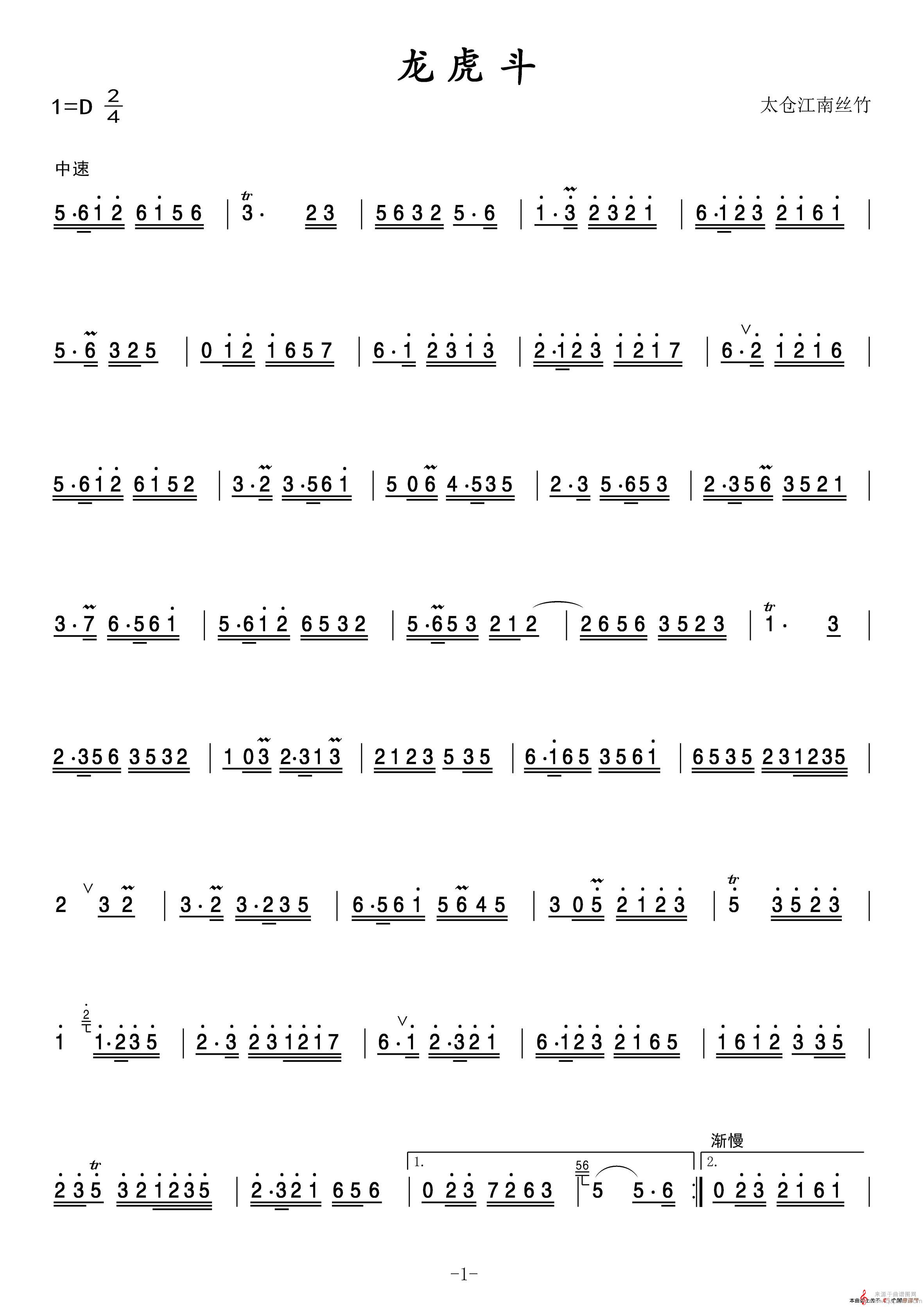 曲谱图网为您提供龙虎斗(张晓峰编曲)找谱子,就上曲谱图网。