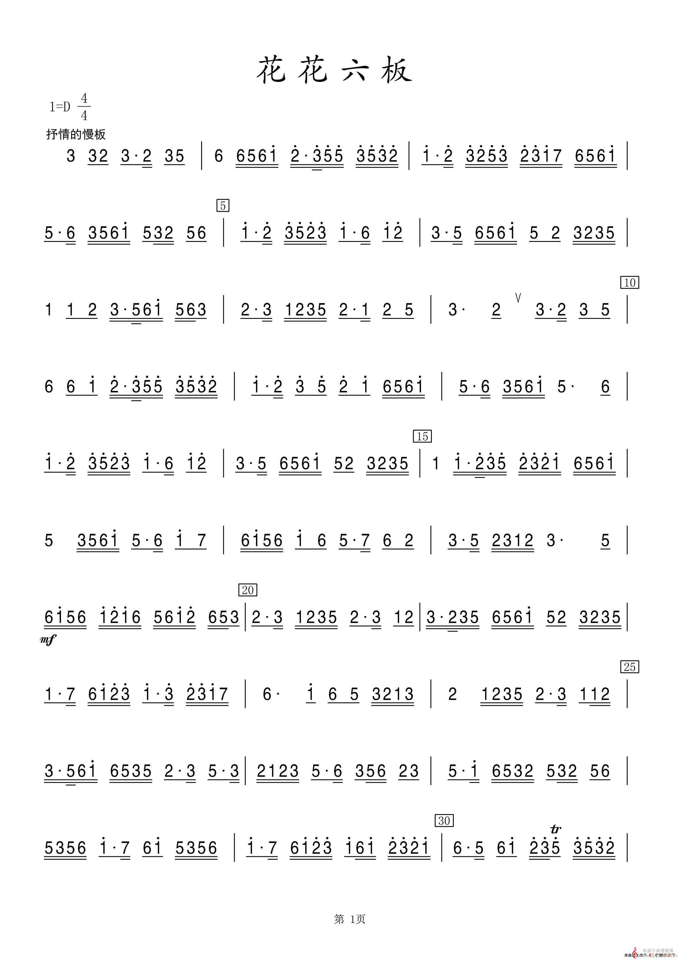 曲谱图网为您提供花花六板(花花六板笛子曲谱)找谱子,就上曲谱图网。