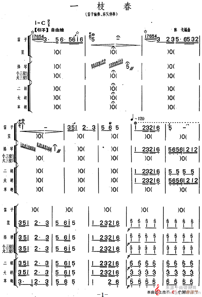 曲谱图网为您提供一枝春(一枝春笛子独奏+民乐队伴奏)找谱子,就上曲谱图网。