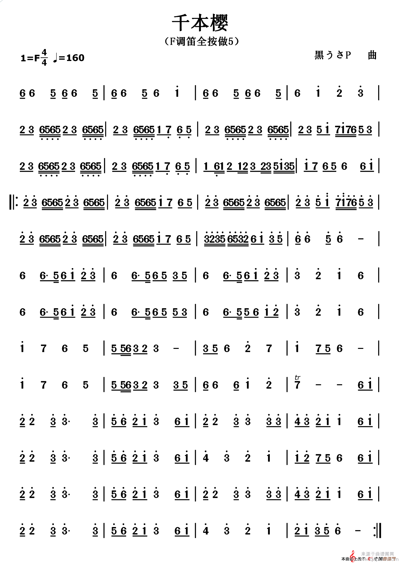 曲谱图网为您提供千本樱(千本樱笛箫)找谱子,就上曲谱图网。