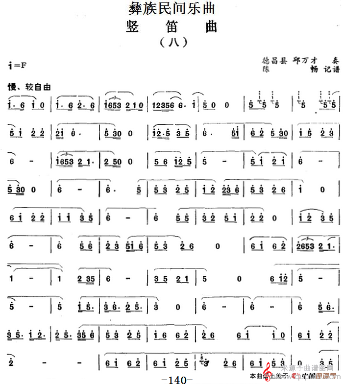 曲谱图网为您提供彝族民间乐曲:竖笛曲(八)(笛子独奏)找谱子,就上曲谱图网。