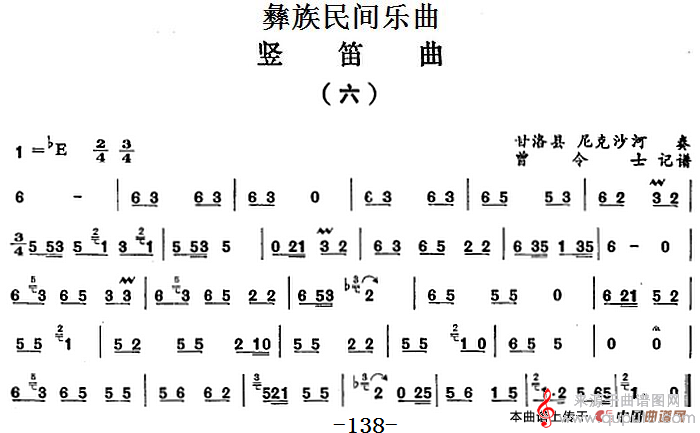 曲谱图网为您提供彝族民间乐曲:竖笛曲(六)(笛子独奏)找谱子,就上曲谱图网。