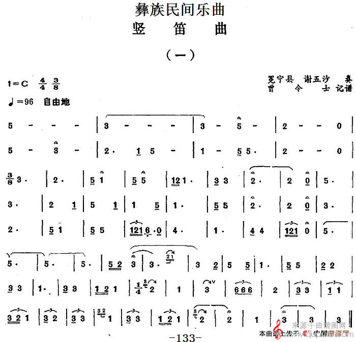 曲谱图网为您提供彝族民间乐曲:竖笛曲(一)(笛子独奏)找谱子,就上曲谱图网。
