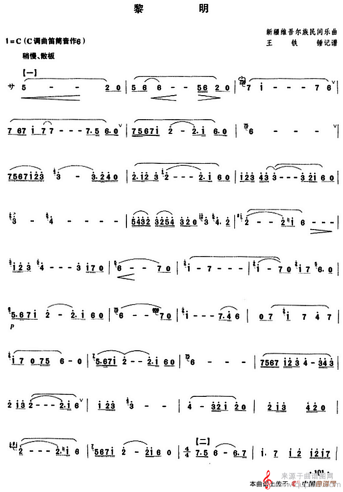 新疆维吾尔族民间乐曲 王铁锤记谱