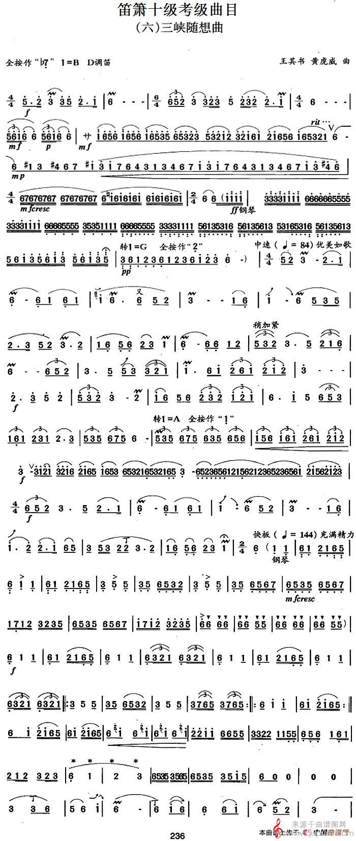 曲谱图网为您提供笛箫十级考级曲目:三峡随想曲(笛子独奏)找谱子,就上曲谱图网。