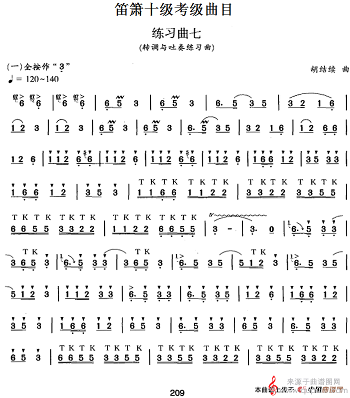 笛箫十级考级曲目:练习曲七(转调与吐奏练习曲)(笛箫)