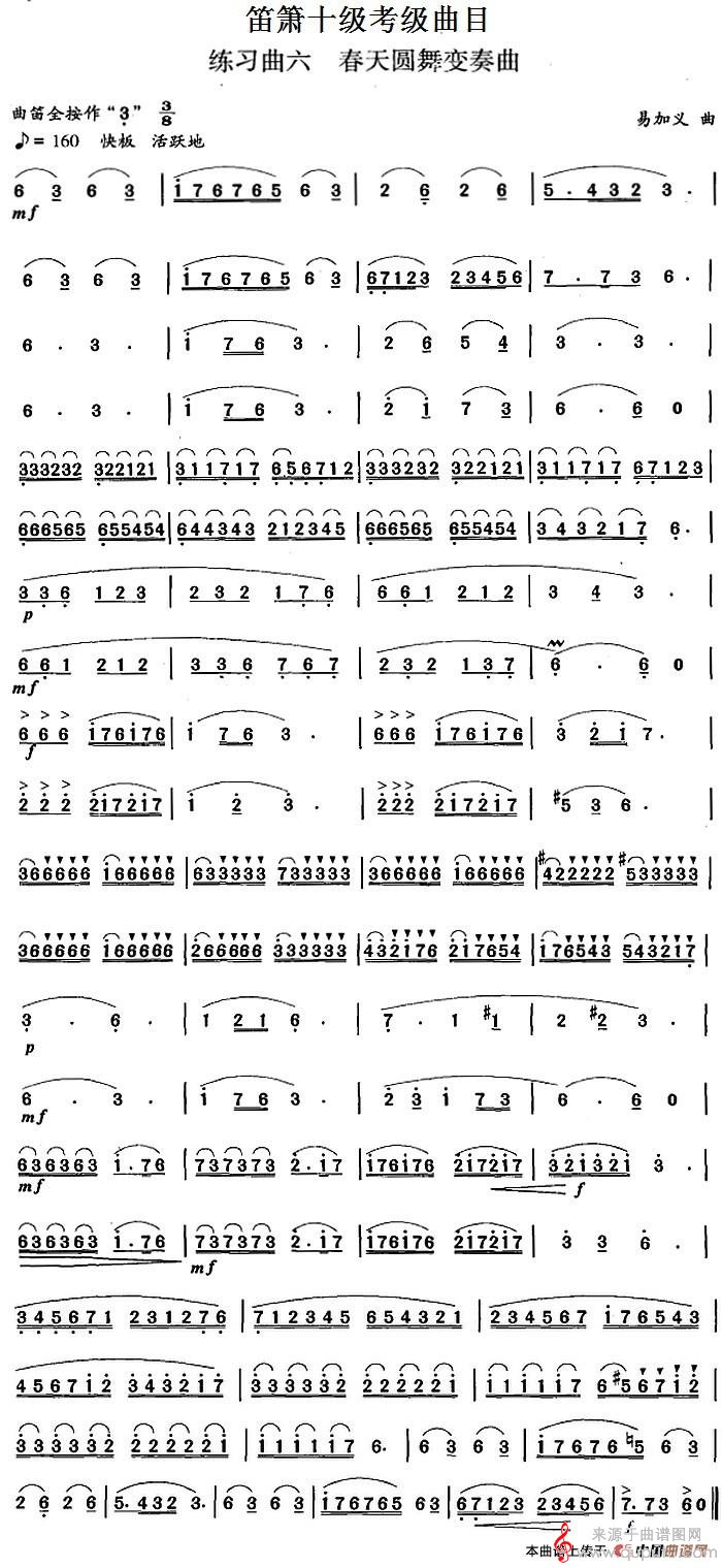 曲谱图网为您提供笛箫十级考级曲目:练习曲六(春天圆舞变奏曲)(笛箫)找谱子,就上曲谱图网。