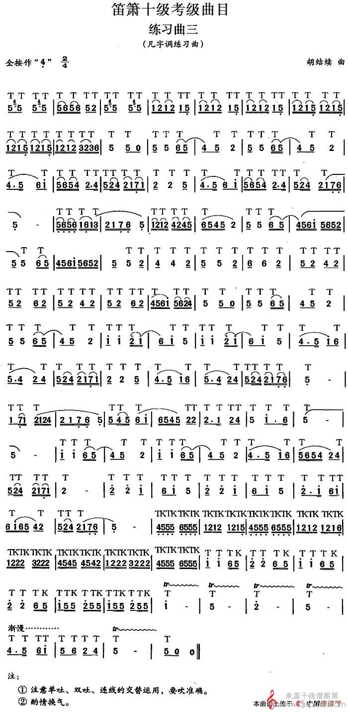 笛箫十级考级曲目:练习曲三(凡字调练习曲)(笛箫)