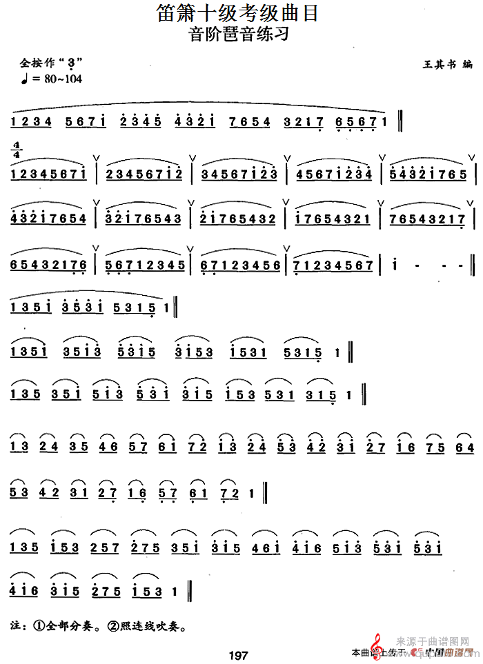笛箫十级考级曲目:音阶琶音练习(笛子曲谱)