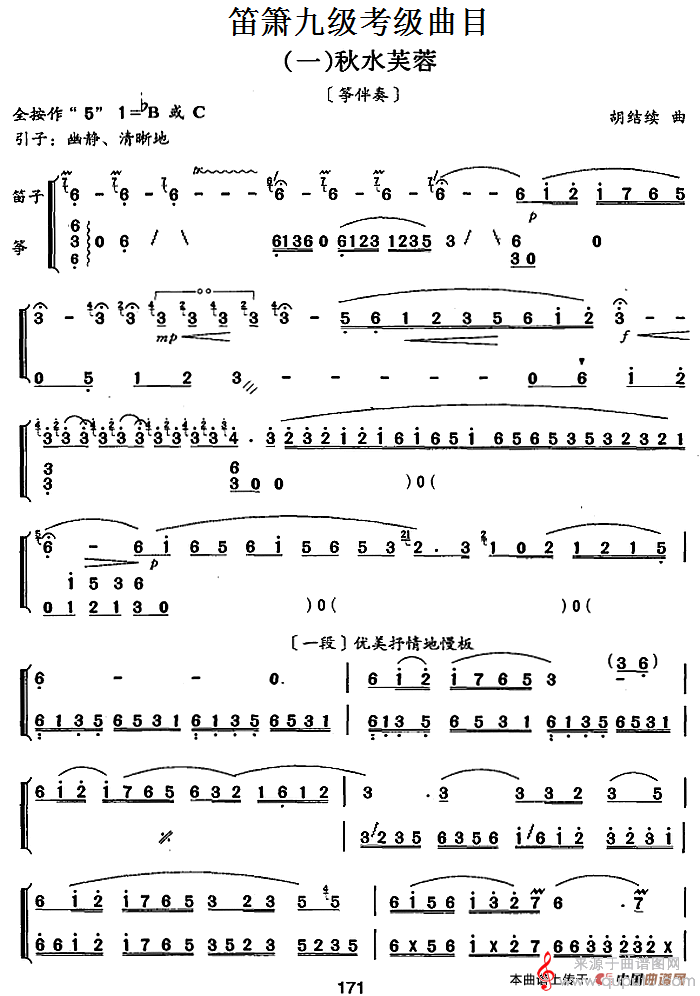 曲谱图网为您提供笛箫九级考级曲目:秋水芙蓉(笛箫)找谱子,就上曲谱图网。