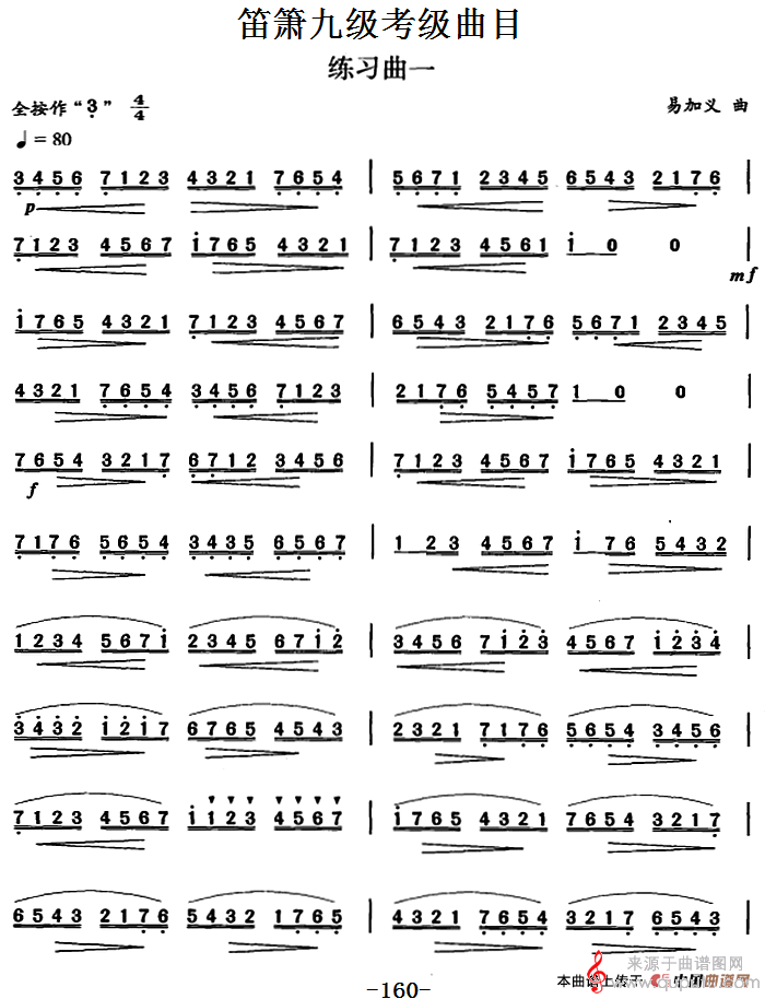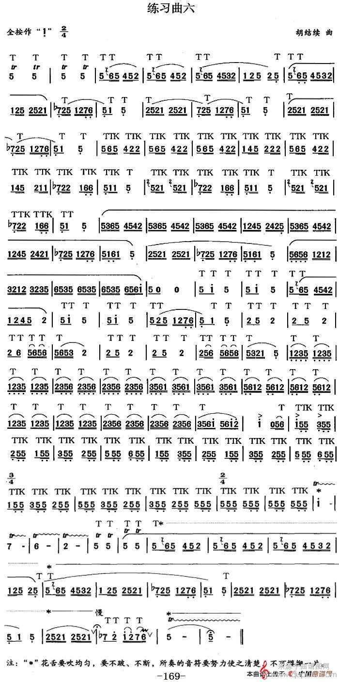 笛箫九级考级曲目:练习曲(1——6)(笛箫)