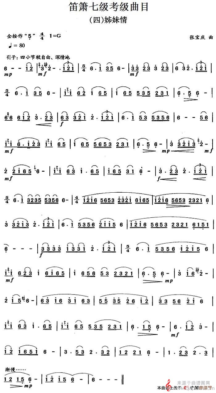 曲谱图网为您提供笛箫七级考级曲目:姊妹情(姊妹情笛子二重奏曲谱)找谱子,就上曲谱图网。