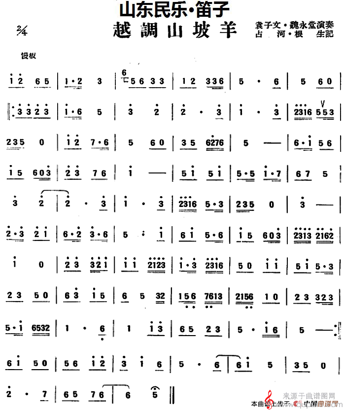 曲谱图网为您提供越调山坡羊(山东民乐、笛子)找谱子,就上曲谱图网。