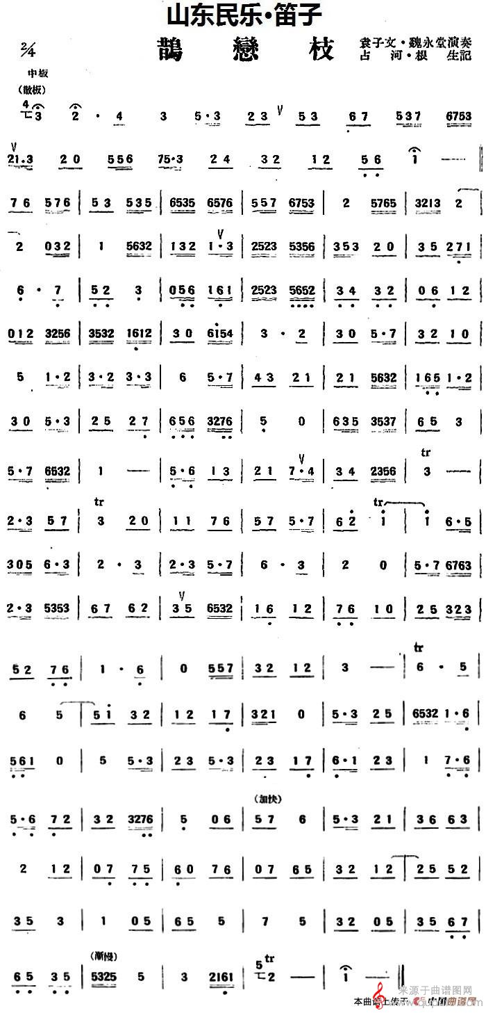 曲谱图网为您提供鹊恋枝(山东民乐、笛子)找谱子,就上曲谱图网。