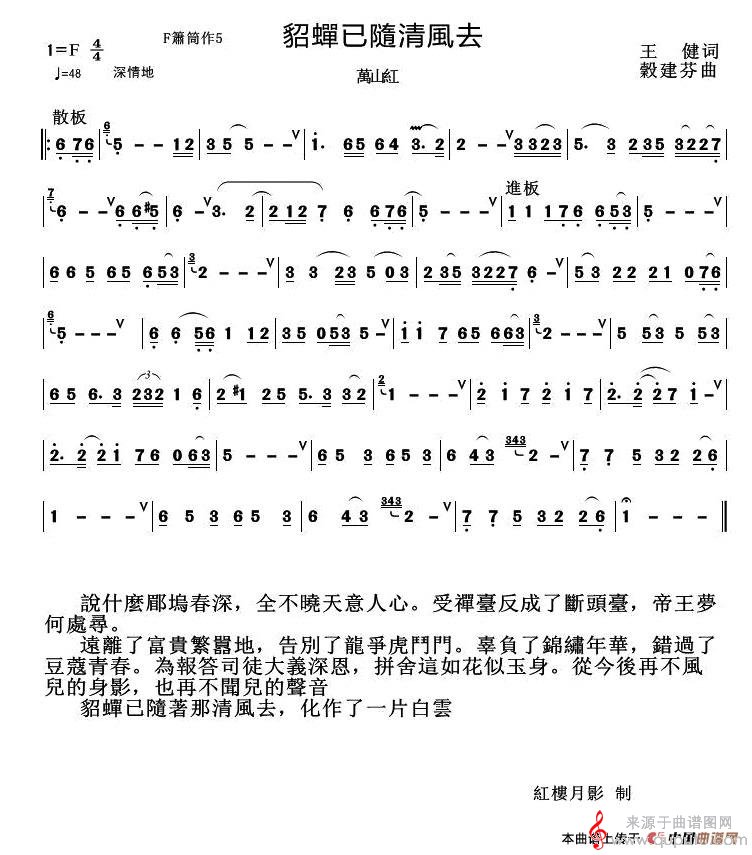 曲谱图网为您提供貂蝉已随清风去简谱(貂蝉已随清风去歌词箫谱)找谱子,就上曲谱图网。