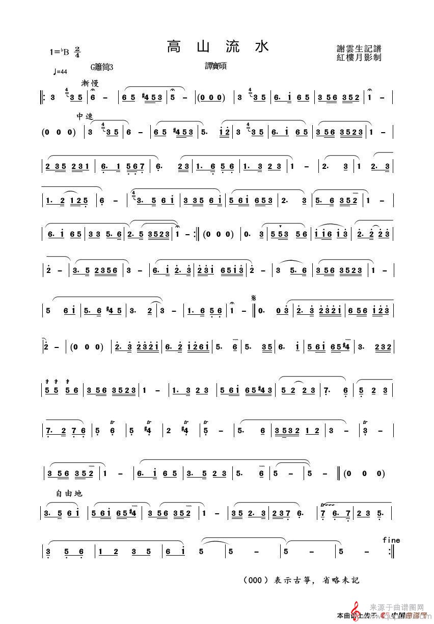 曲谱图网为您提供高山流水(高山流水洞箫谱)找谱子,就上曲谱图网。