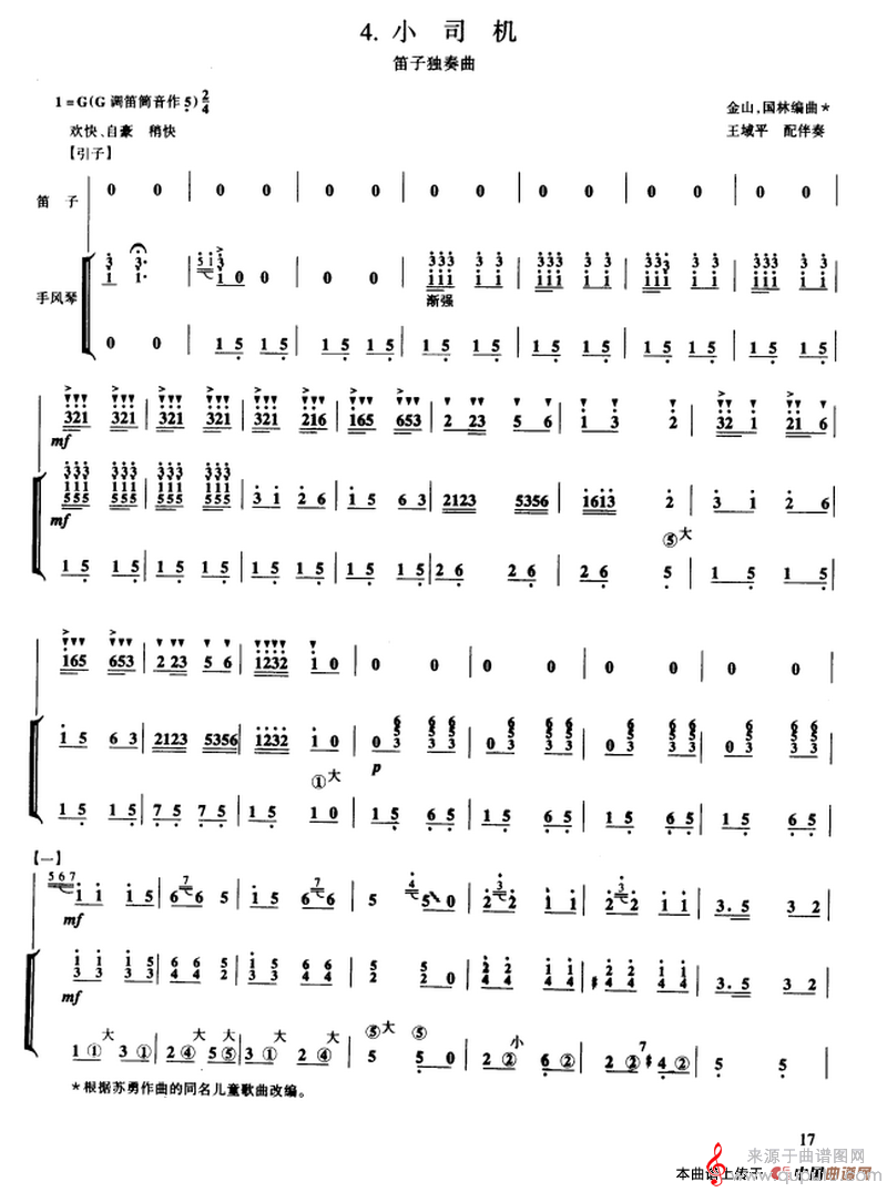 曲谱图网为您提供小司机(小司机歌曲歌词简谱笛子独奏)找谱子,就上曲谱图网。