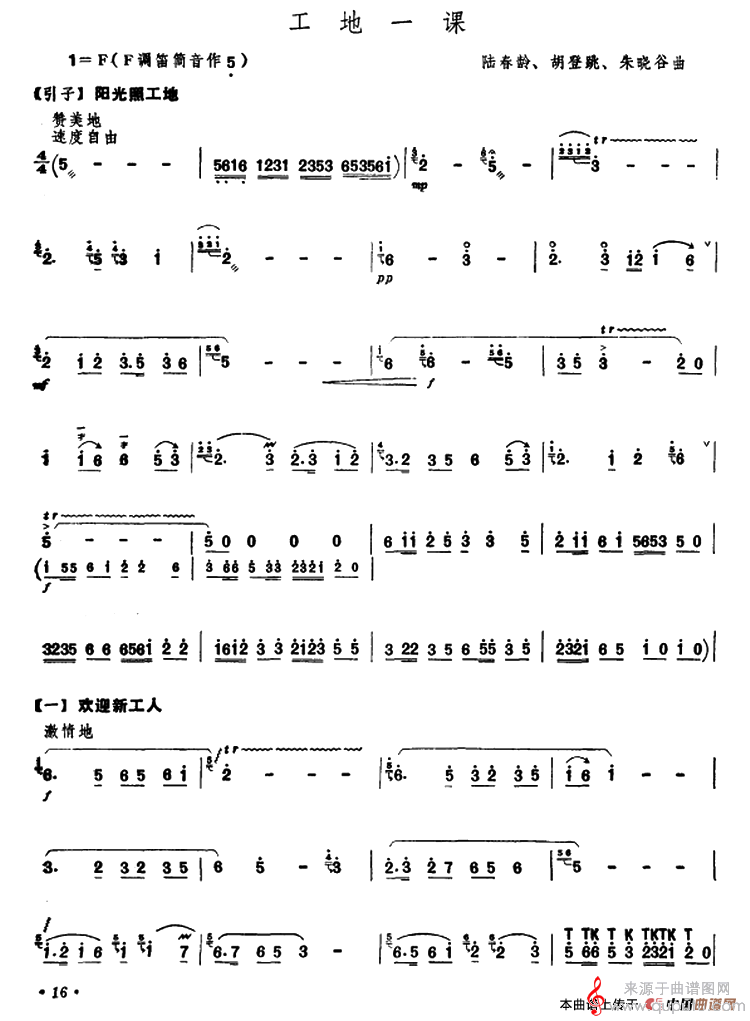 曲谱图网为您提供工地一课(陆春龄 胡登跳 朱晓谷曲)找谱子,就上曲谱图网。
