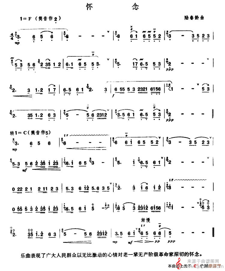 曲谱图网为您提供怀念(陆春龄曲)找谱子,就上曲谱图网。