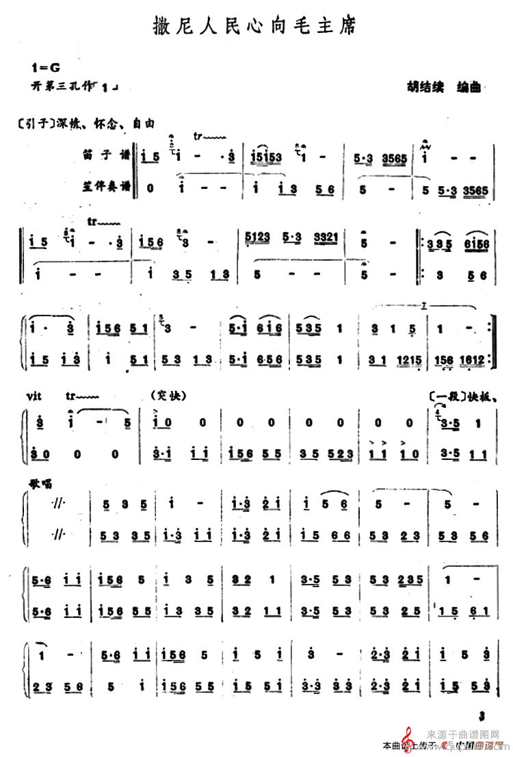 曲谱图网为您提供撒尼人民心向毛主席(撒尼人民心向毛主席笛子+笙伴奏)找谱子,就上曲谱图网。
