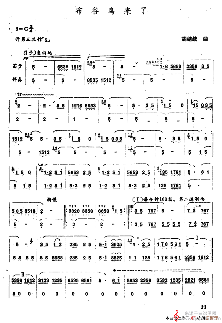 曲谱图网为您提供布谷鸟来了(布谷鸟来了笛子独奏)找谱子,就上曲谱图网。