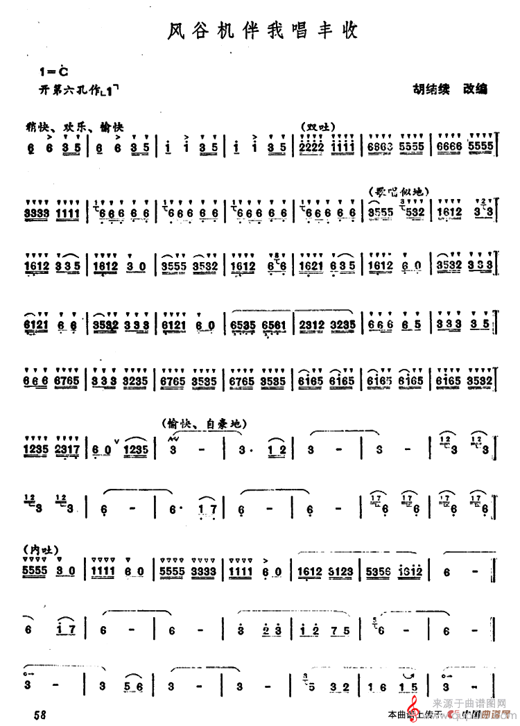 曲谱图网为您提供风谷机伴我唱丰收(胡结续曲)找谱子,就上曲谱图网。