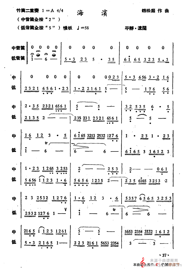 曲谱图网为您提供海滨(海滨竹笛二重奏)找谱子,就上曲谱图网。