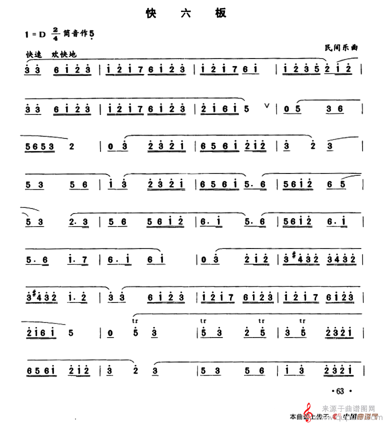 曲谱图网为您提供快六板(快六板简谱笛子)找谱子,就上曲谱图网。