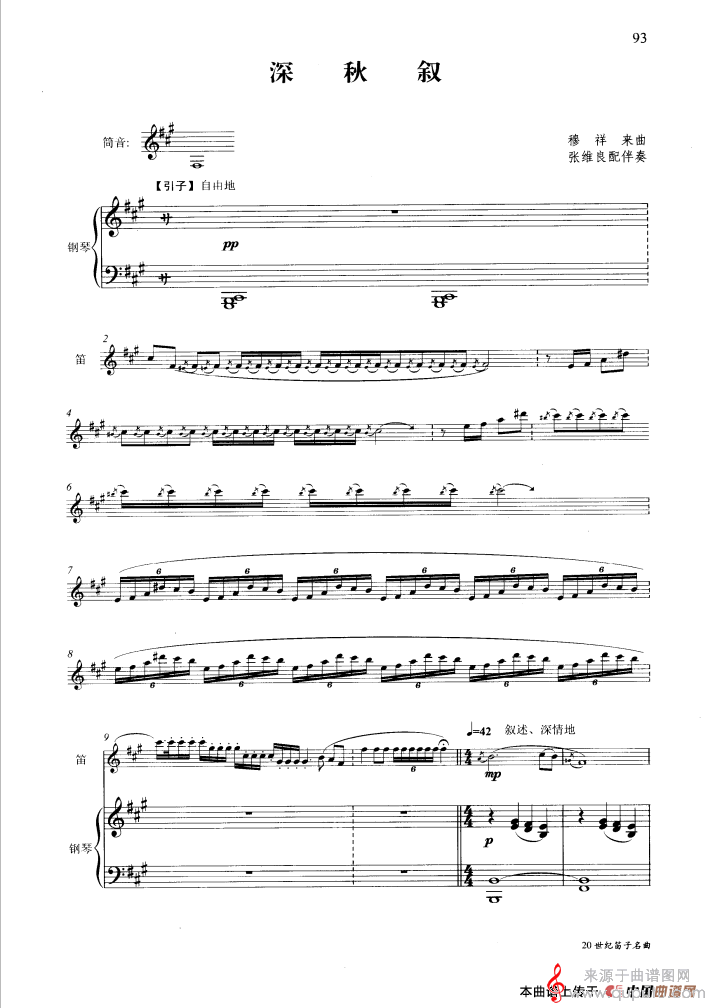 曲谱图网为您提供深秋叙(深秋叙笛子独奏钢琴伴奏谱)找谱子,就上曲谱图网。